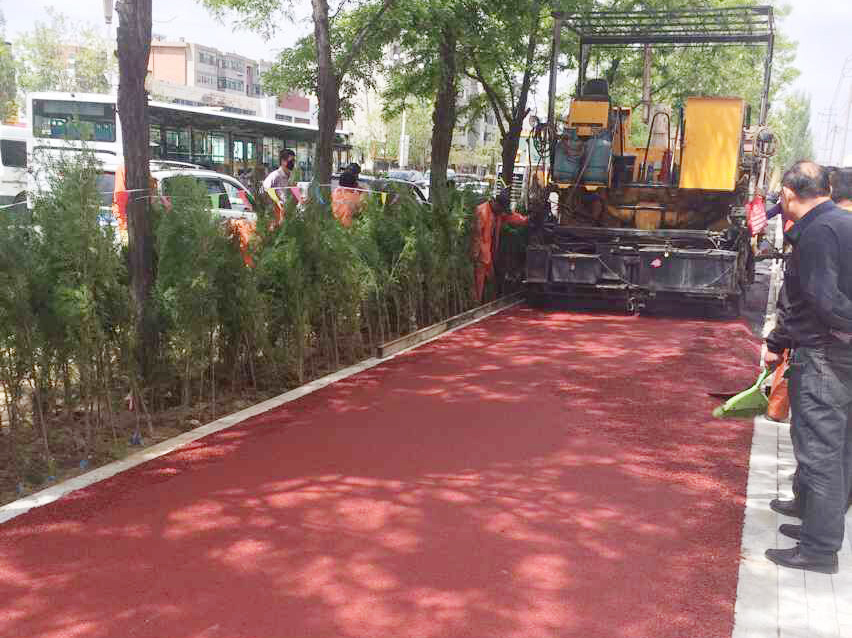 包頭巴彥塔拉大街道路改造項(xiàng)目彩色瀝青混合料試驗(yàn)段鋪筑成功
