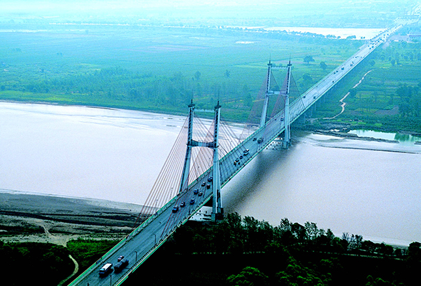 φ1.8m鉆孔灌注樁240棵,φ2.0m鉆孔灌注樁97棵,承臺(tái)50個(gè),系梁1道,薄壁墩12個(gè),柱式墩80個(gè),支座115個(gè),45米箱梁24跨,46米箱梁20跨,主橋高197米,塔柱一座,鋼錨箱安裝21節(jié),鋼箱梁吊裝46段,斜拉索左右幅各24對(duì),引橋外側(cè)護(hù)欄2000米,中央分隔帶底座1000米,伸縮縫12道。